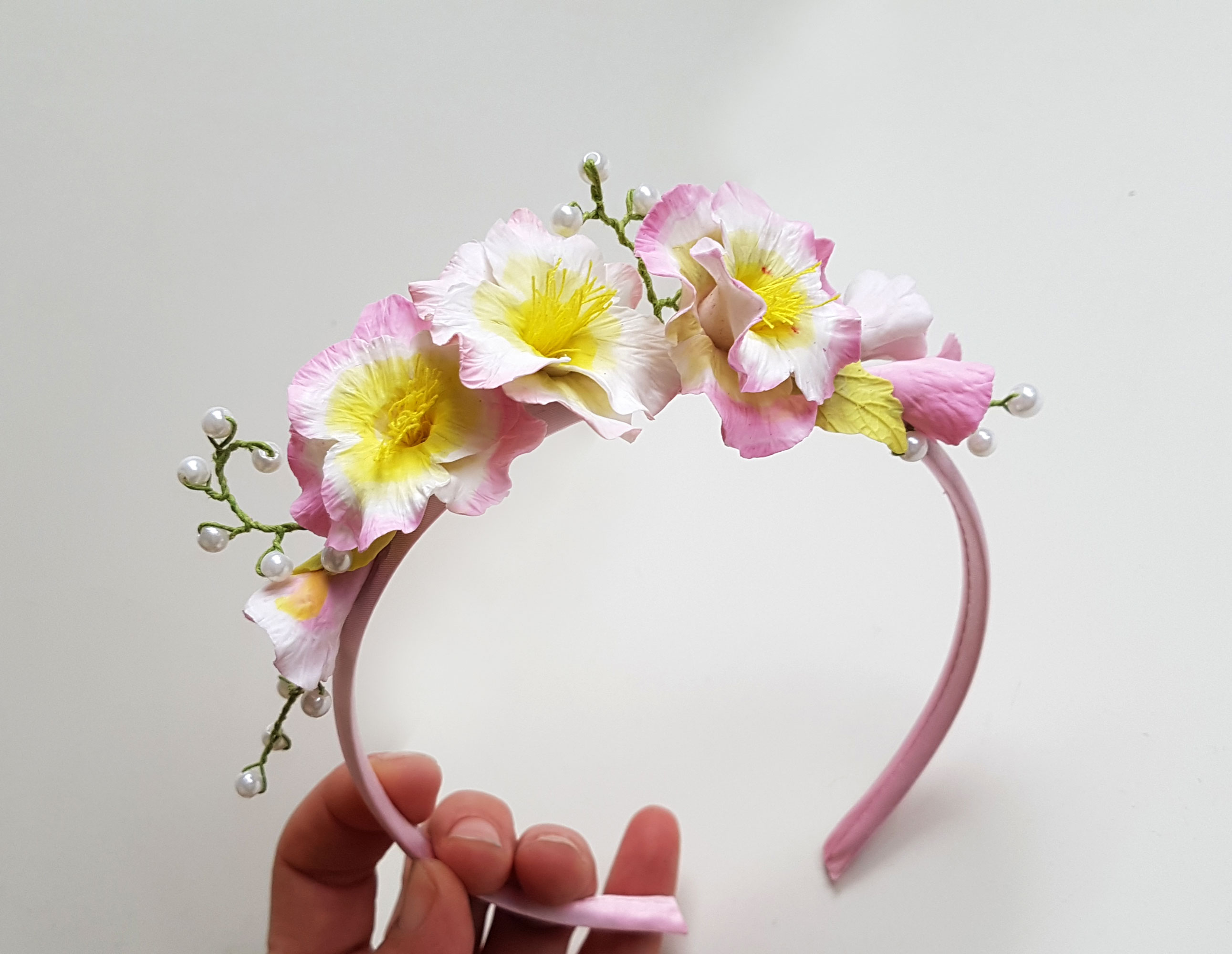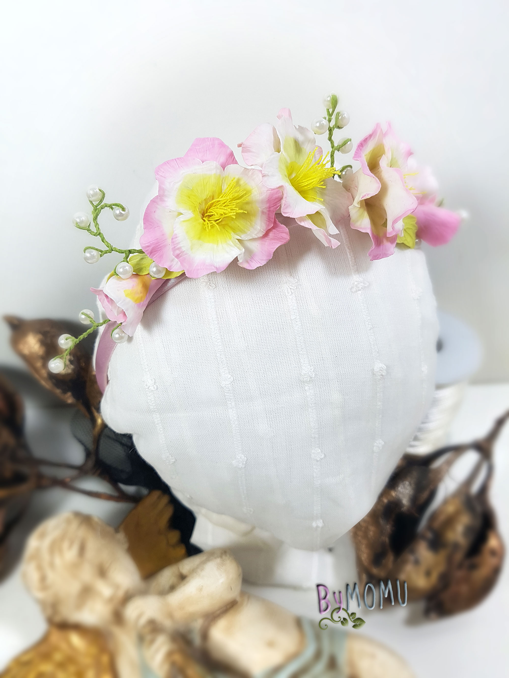 Diademas flores para el Pelo, Flores de Porcelana, Tocado Novias y Damas de honor, diademas de comunión
