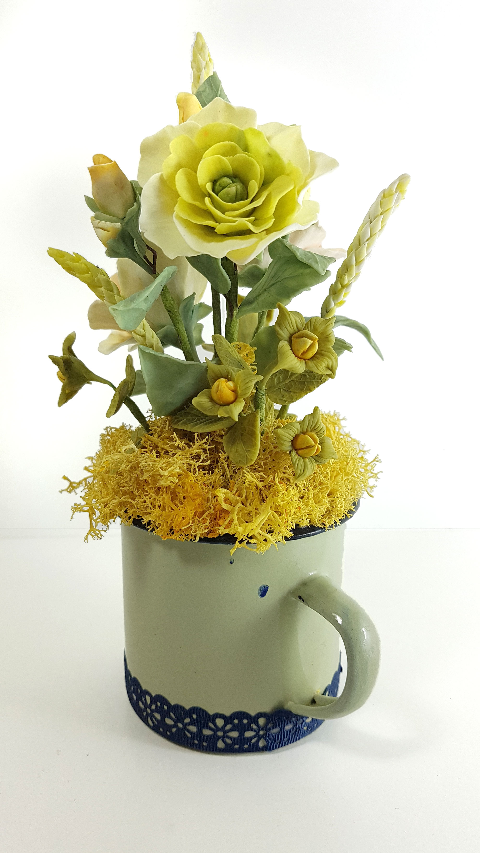 CENTRO DE FLORES DE PORCELANA RUSA HECHO A MANO- HAND MADE Miniaturas de centros hechos a mano por lo que son únicos no hay otra unidad igual. Flores y hojas realizadas y pintadas a mano con Pasta de Porcelana Rusa sobre una pequeña taza metalica Ideales para regalar, se envían en cajita y se adjunta una pequeña tarjeta para poder escribir un Te quiero, Felicidades o aquellas palabras que no te atreviste a decirle. Junto con las instrucciones para mantener las flores siempre bellas.
